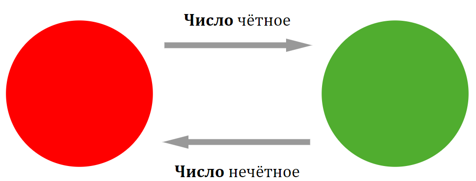 Пусть имеется панель для ввода чисел с индикатором, который светится красным, если введено нечетное число, и зеленым, если введено четное число. Требуется разработать конечный автомат для данной системы.