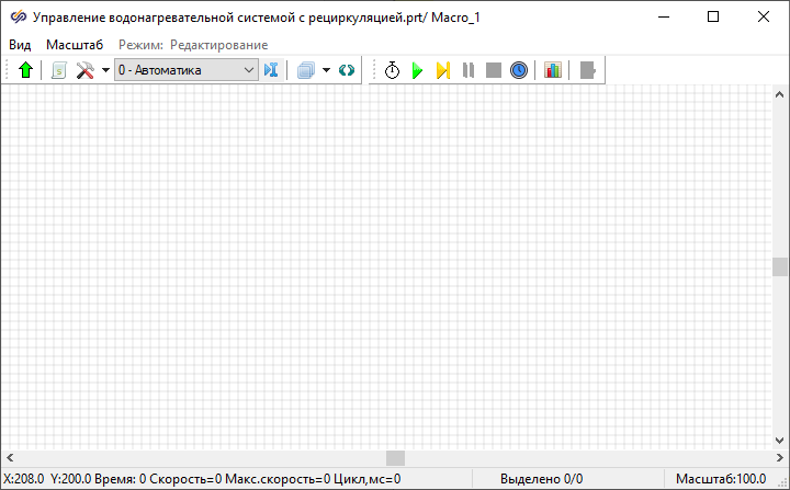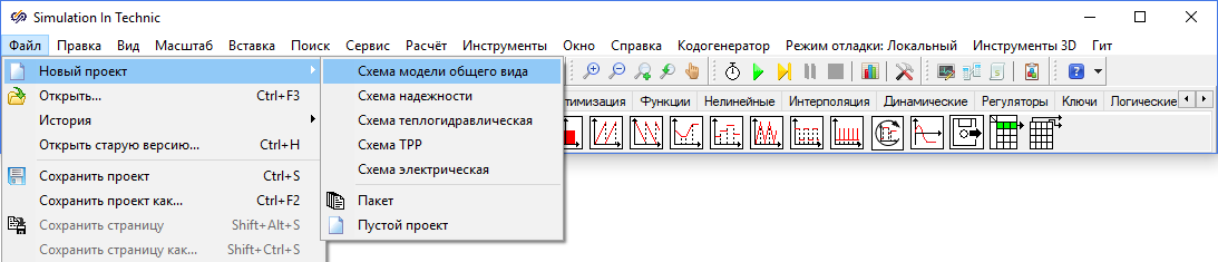 - В главном окне SimInTech нажать кнопку Файл и выбрать пункт Новый проект