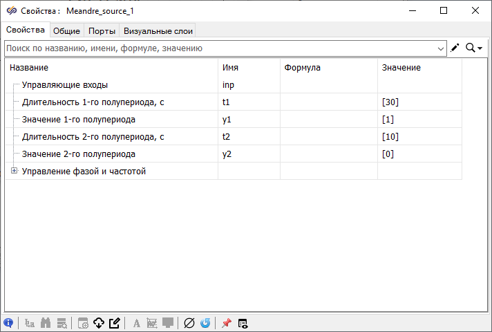 - 2 блока Меандр из вкладки Источники – с помощью данных блоков будут формироваться сигналы состояния насоса и нагревателя