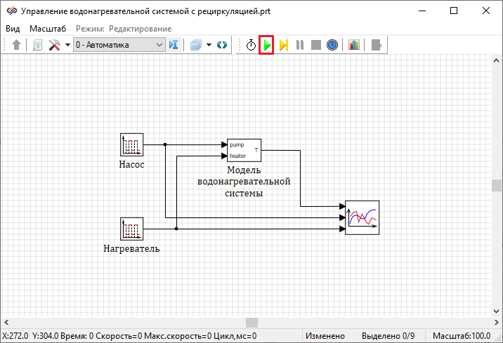 Проверка работы модели водонагревательной системы