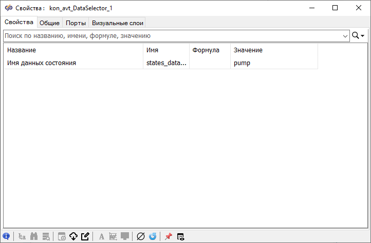 Рис. 37. Окно "Свойства" блока "Селектор данных состояния" с измененным именем данных состояния.