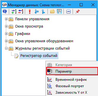 В окне Менеджер данных под пунктом "Регистратор событий" появится новый параметр Z1.State.
