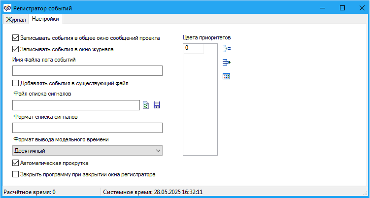 - Приоритет – определяет очередность регистрации событий в журнале, для событий, которые произошли одновременно, первым записывается событие с более высоким приоритетом