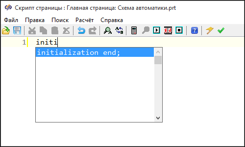 Окно редактора скрипта проекта появляется при нажатии на кнопку Скрипт на панели инструментов схемного окна проекта: