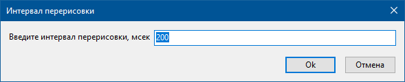 Для установки нового интервала перерисовки следует ввести выбранное значение (в мс) и нажать кнопку "ОК".