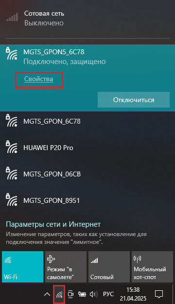 - В области уведомлений нажмите на иконку "Доступ к Интернету" и выберите
