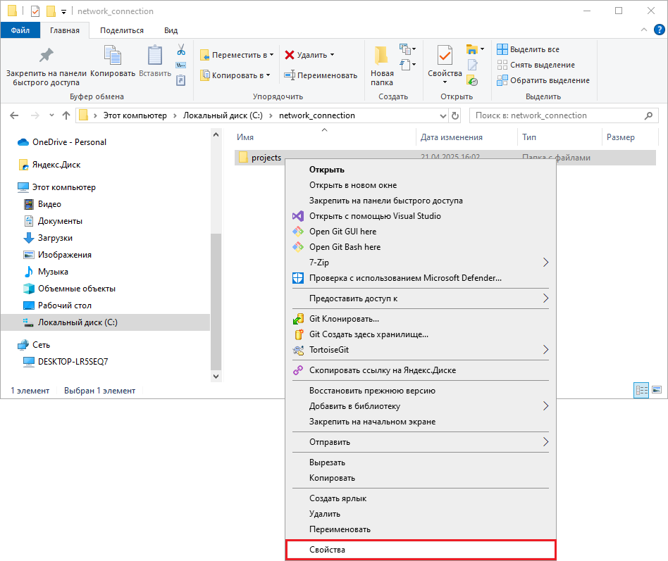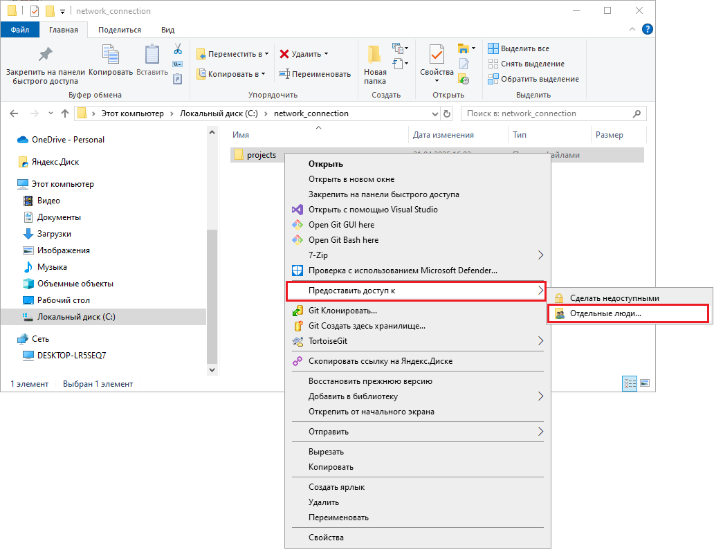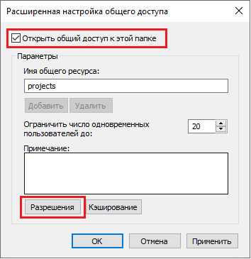 net user имя_пользователя /delete.Следующим шагом является настройка общего доступа к папке с проектами.