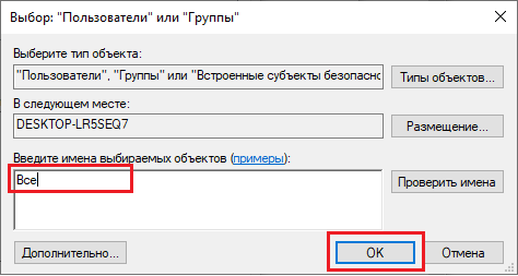 используется англоязычная версия операционной системы, то ввести "Everyone".