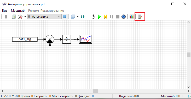 После этого начнется распределенный расчет с синхронизацией модельного времени и обменом данными по сигналам базы данных SDB. При нажатии кнопок "Пуск", "Пауза" и "Стоп" с сервера аналогичные команды будут выполнены на всех клиентах.