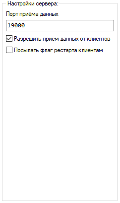 | Разрешить приём данных от клиентов | Режим приема данных сервером от клиентов. Активация данного пункта является необходимым условием для реализации сетевого обмена |