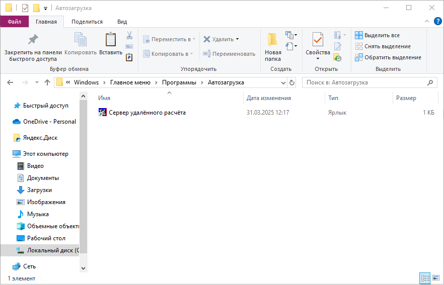- Скопировать в папку "Автозагрузка" ярлык программы "Сервер удаленного расчета" (Рисунок 30)